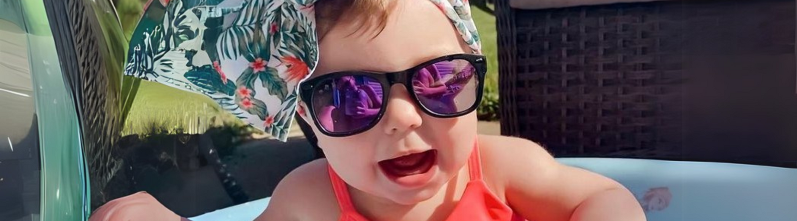Babies can begin wearing sunglasses from 0-2+ (depending on your baby's head size), or whenever they start spending time outdoors regularly in the sun. Just like with sun hats and SPF, it’s best to introduce them early so it becomes part of their routine.