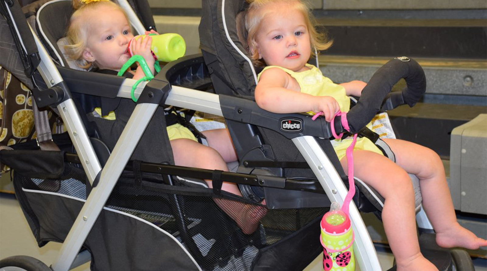 The Cup Catcher is a multi-use connector to safely tether a sippy cup, bottle, or even your favourite toy to a car seat, highchair, stroller, wheelchair or shopping cart, all while providing a sanitary and stylish design. With the adjustable tail you can attach to many different straps, safety belts, and bars, catching the cup keeping it clean.