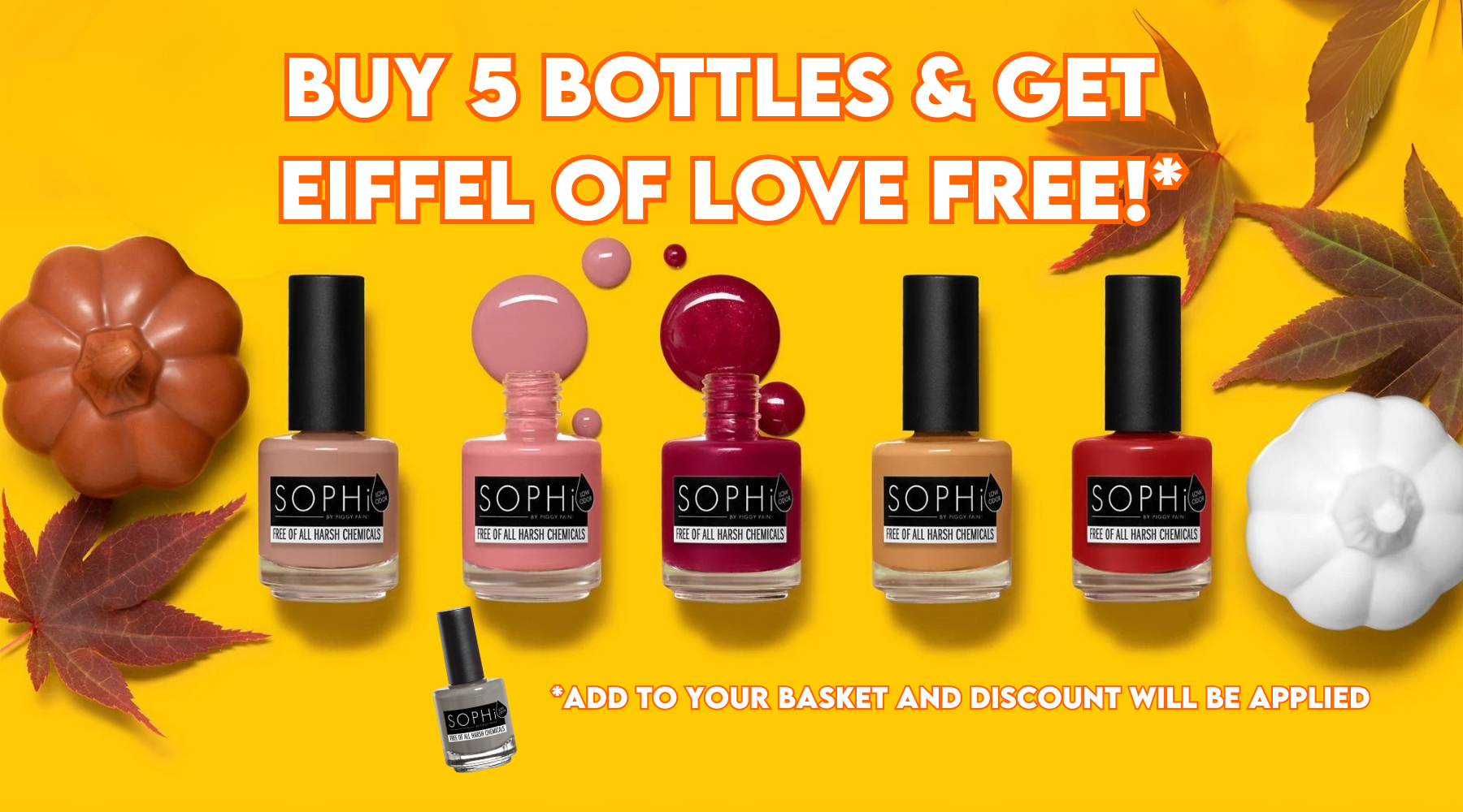 SOPHi by Piggy Paint allows health-conscious women to have a worry-free manicure. This advanced water-based formula is virtually odorless, cruelty-free, & vegan. Finally, nail polish that leaves nails healthy and doesn’t cause them to yellow or become brittle. Better than 7 & 10 free, SOPHi is free of ALL harsh, smelly chemicals! Non-toxic & SOPHisticated nail polish at a competitive retail.