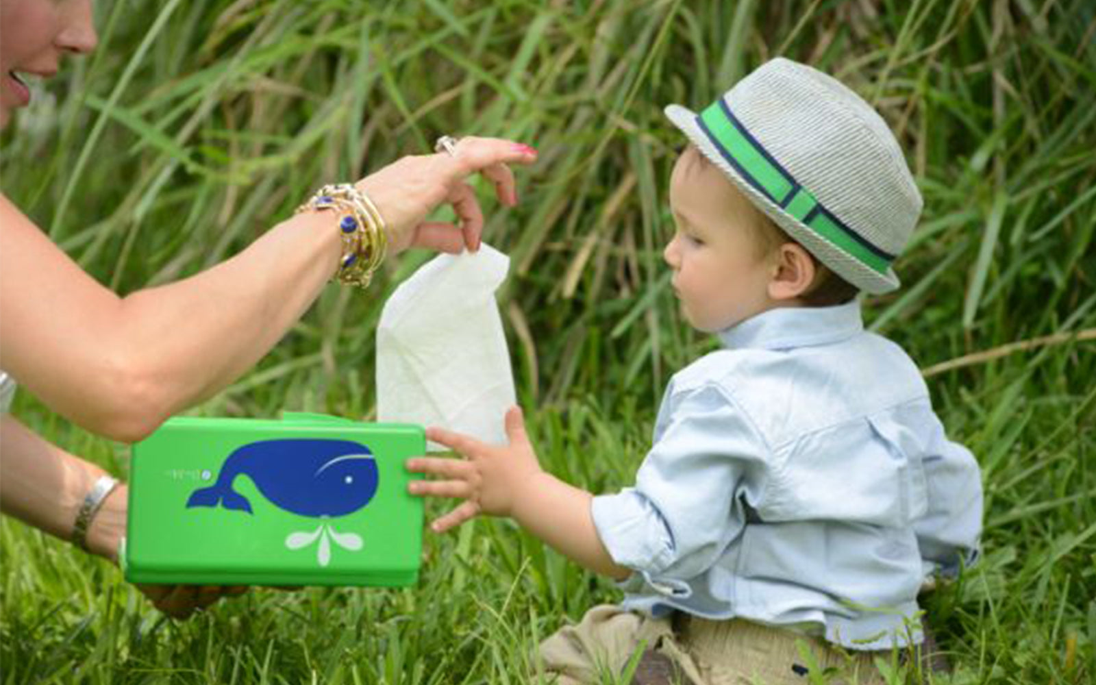 A reusable, designer wipe case for travel that always keeps baby wipes clean, moist and fresh.